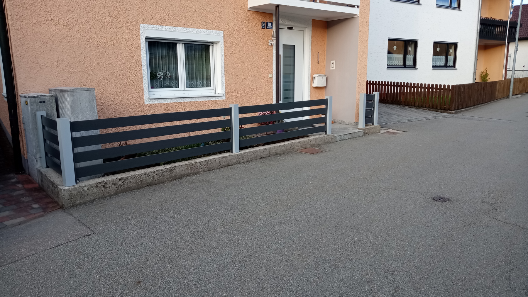 Vielseitiger Aluzaun der sich überall flexibel und geschmackvoll einfügt. Durch variable Farbgebung und einer Auswahl an Dekorelementen, individuell gestaltbar.