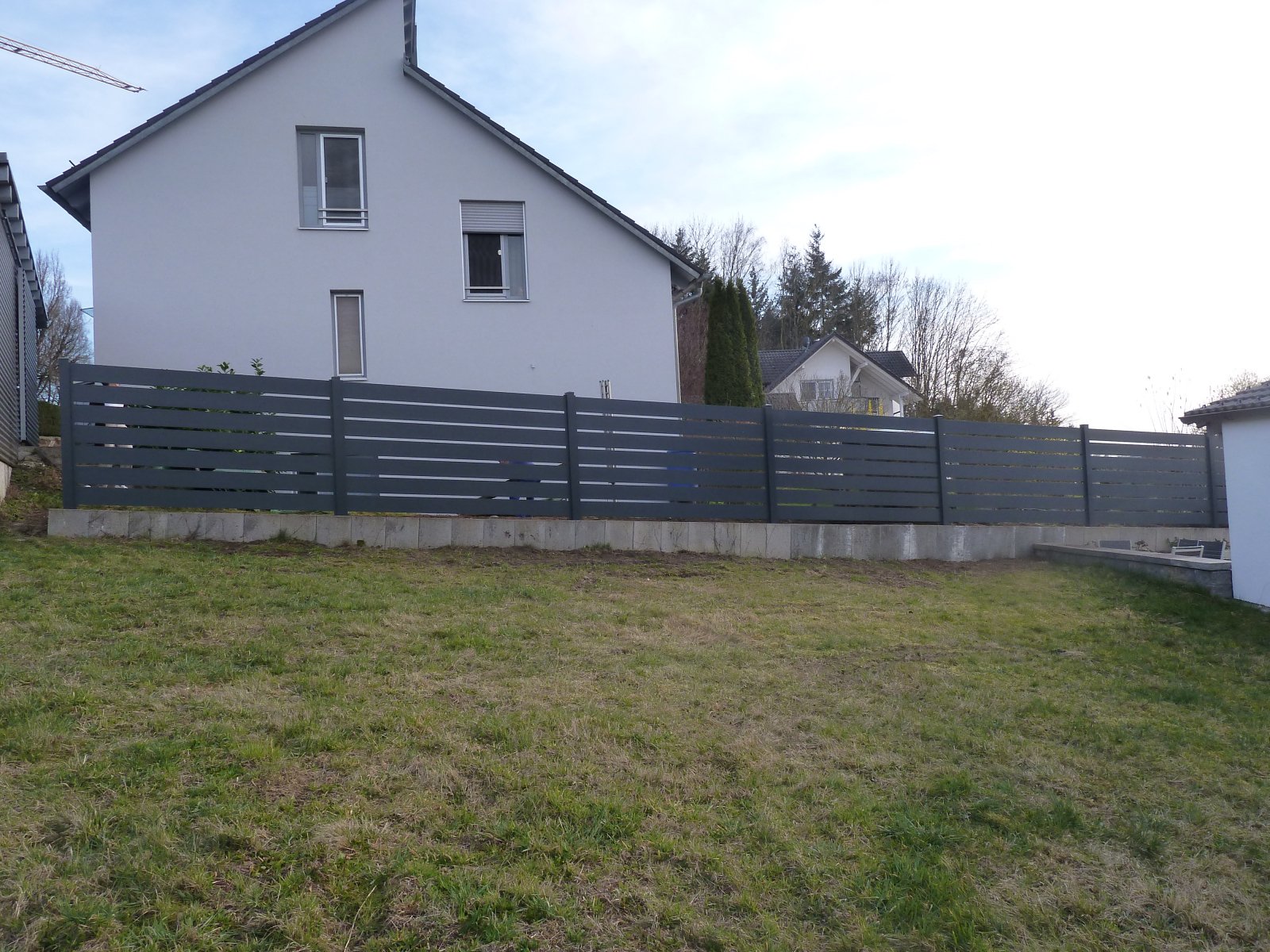 Stattlicher Aluzaun mit breiten Standardlatten und vielen Designoptionen. TRIEST bietet die Wahl zwischen Sichtschutz und blickdurchlässige Ausführung.