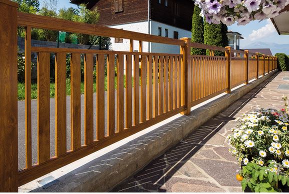 Anmut und Simplizität prägen das traditionelle Design dieses Aluzauns. Fünf verschiedene Füllungsanordnungen bieten eine Vielzahl von Ausführungsvarianten.