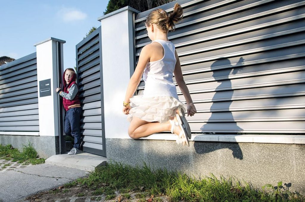 Der Sichtschutzzaun TRENTO aus Aluminium ist mit Lamellen in Querausrichtung ausgestattet und auf Wunsch mit oder ohne Zierrille erhältlich. Standardmäßig ist der Gartenzaun mit Zierrille vorgesehen, da diese das Design noch spannender und individueller wirken lässt. Für ein harmonisches Gesamtbild empfiehlt sich die Auswahl eines Gartentors im gleichen TRENTO-Design, das ebenfalls erhältlich sind.